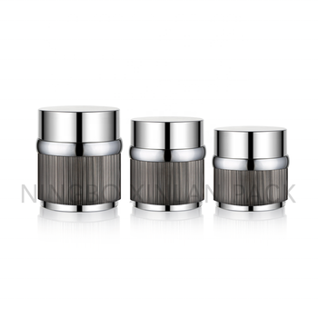 De lujo de la forma redonda de lujo de plata brillante de acrílico cosmética sin aire de la botella de la loción y tarro de crema conjunto